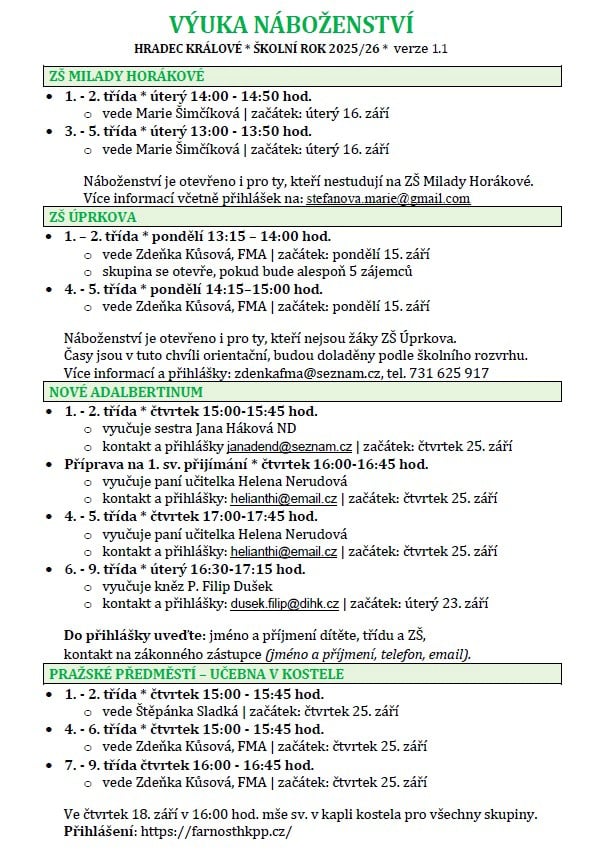 VÝUKA NÁBOŽENSTVÍ V CELÉM HRADCI KRÁLOVÉ